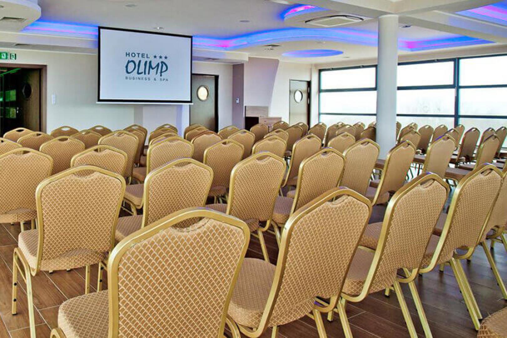 Olimp jest dogodnie usytuowany przy trasie E-6. Goście hotelowi mogą bezpłatnie korzystać z kompleksu saun, w którym znajduje się łaźnia parowa z aromaterapią, wanna z hydromasażem, sauna fińska i podgrzewane leżaki oraz „słoneczna łączka”.