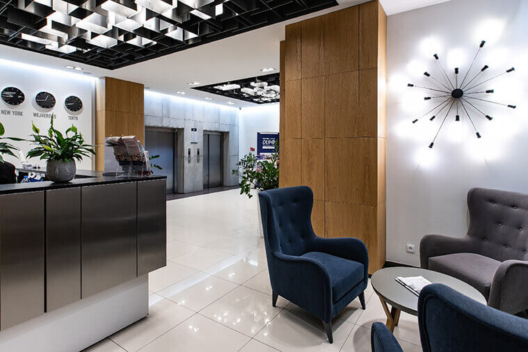 Sala konferencyjno-bankietowa usytuowana jest na samym szczycie budynku: na 5 piętrze. W budynku znajdują się dwie windy. Dodatkowym atutem sali jest oszklenie z trzech stron roaz bezpośrednie wyjście na duży taras z fantastycznym widokiem na całą okolicę. Na tarasie urządziliśmy ogród ze stołami i miejscami siedzącymi.
